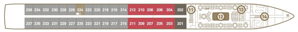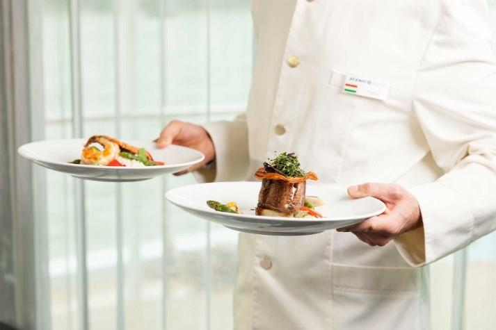 Изысканное питание на борту: завтрак, обед («шведский стол»), ужин по меню (аля-карт), лёгкие закуски в течение всего дня. Напитки по системе«Ультра Всё Включено» (премиум-класса, включая импортные вина, пиво и крепкие спиртные напитки, широкий ассортимент фирменных сортов чая и кофе; мини-бар в каюте).