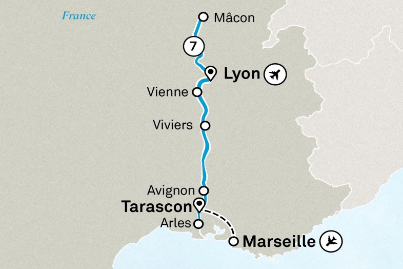 Маршрут: Москва → Стамбул → Марсель → Тараскон → Арль → Авиньон / Вильнёв-лез-Авиньон → Вивье → Гриньян-де-Прованс → Вьен → Макон → Клюни → Лион → Стамбул → Москва или С-Петербург.