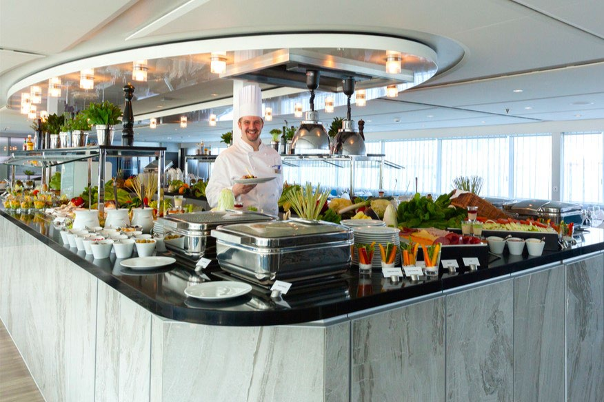 Изысканное питание на борту: завтрак, обед («шведский стол»), ужин по меню (аля-карт), лёгкие закуски в течение всего дня. Напитки по системе «Ультра Всё Включено» (премиум-класса, включая импортные вина, пиво и крепкие спиртные напитки, широкий ассортимент фирменных сортов чая и кофе; мини-бар в каюте).