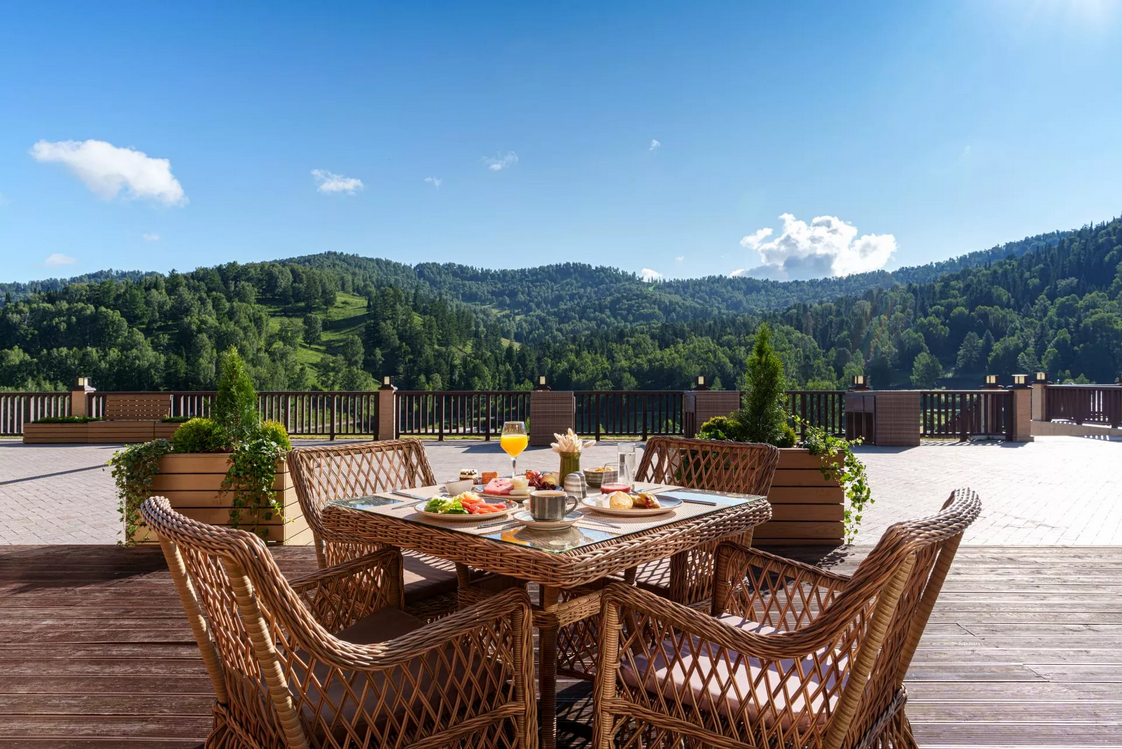 К вечеру мы прибудем в отель «Алтай Резорт 5*», расположенный неподалёку от аэропорта Горно‑Алтайска.