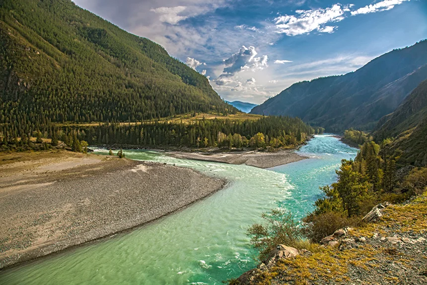Слияние Чуи и Катуни. Первая остановка — место встречи двух великих рек. На смотровой площадке будет время для фотографий и созерцания.