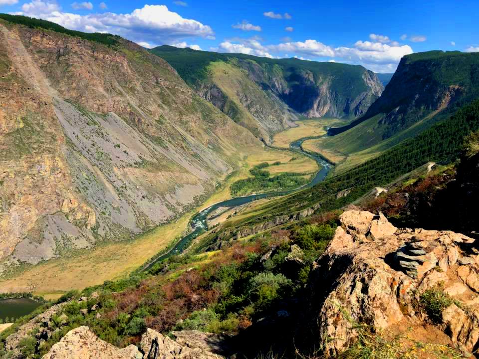 Сегодня вас ждёт захватывающее путешествие на джипах по Улаганскому нагорью — к одному из самых живописных каньонов Алтая. Этот день подарит вам острые ощущения от бездорожья, трепет перед древними тайнами Алтая и незабываемые впечатления от панорамных видов Чулышманской долины.