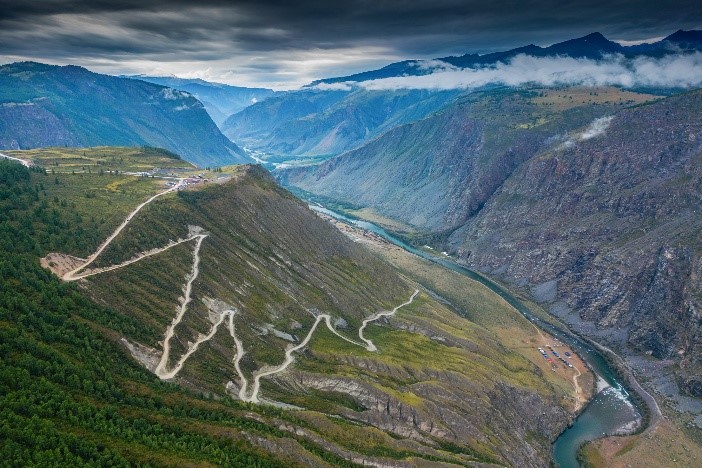 Перевал Кату‑Ярык — кульминация поездки. Спустимся в Чулышманский каньон по зигзагообразному серпантину. Со смотровой площадки откроются головокружительные виды на ущелье и каскады водопадов.