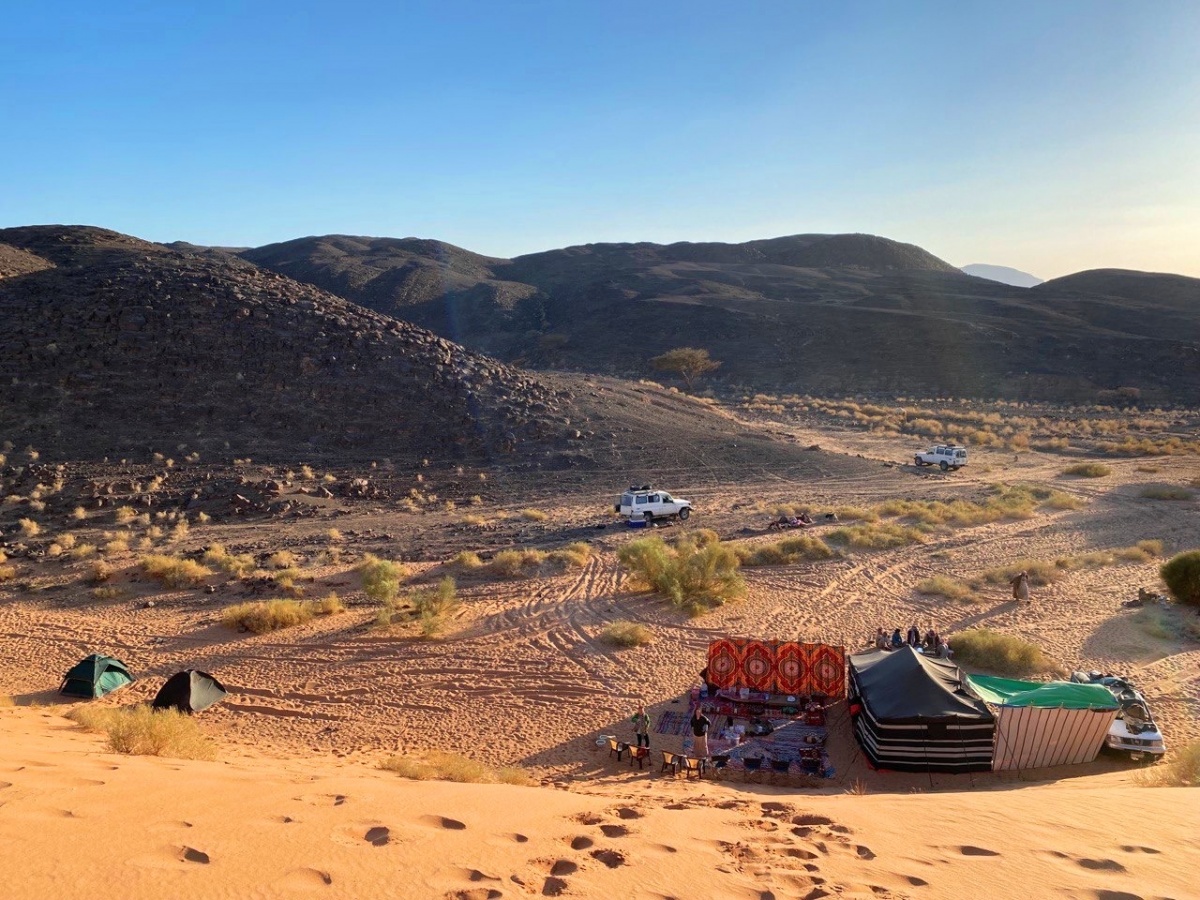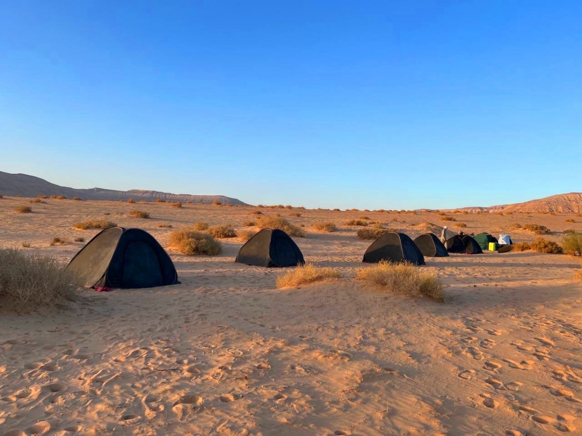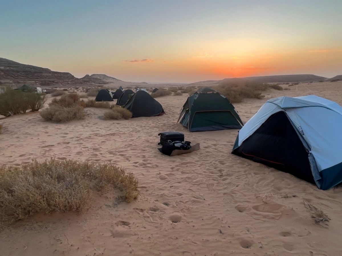 Вечером размещение в лагере, где уже сварен свежий кофе, разбиты индивидуальные палатки на каждого участника путешествия и шатер для общих встреч.