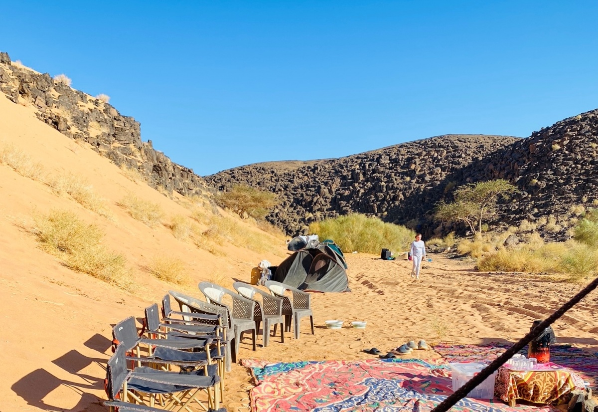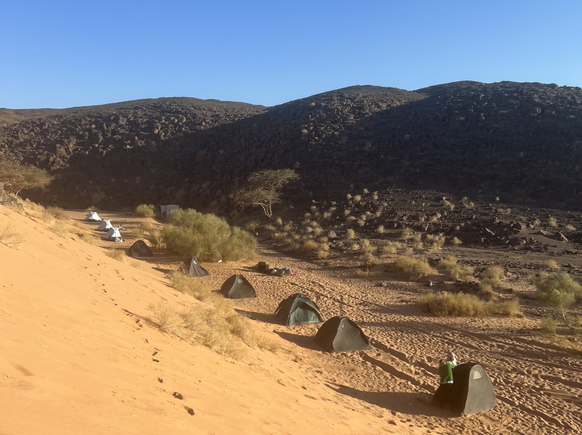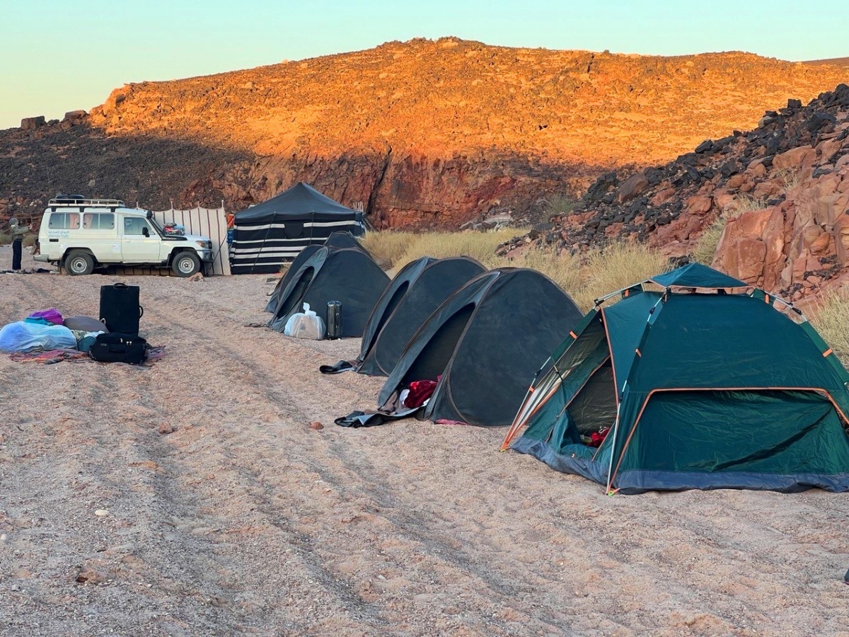 Вечером размещение в лагере, где уже сварен свежий кофе, разбиты индивидуальные палатки на каждого участника путешествия и шатер для общих встреч.