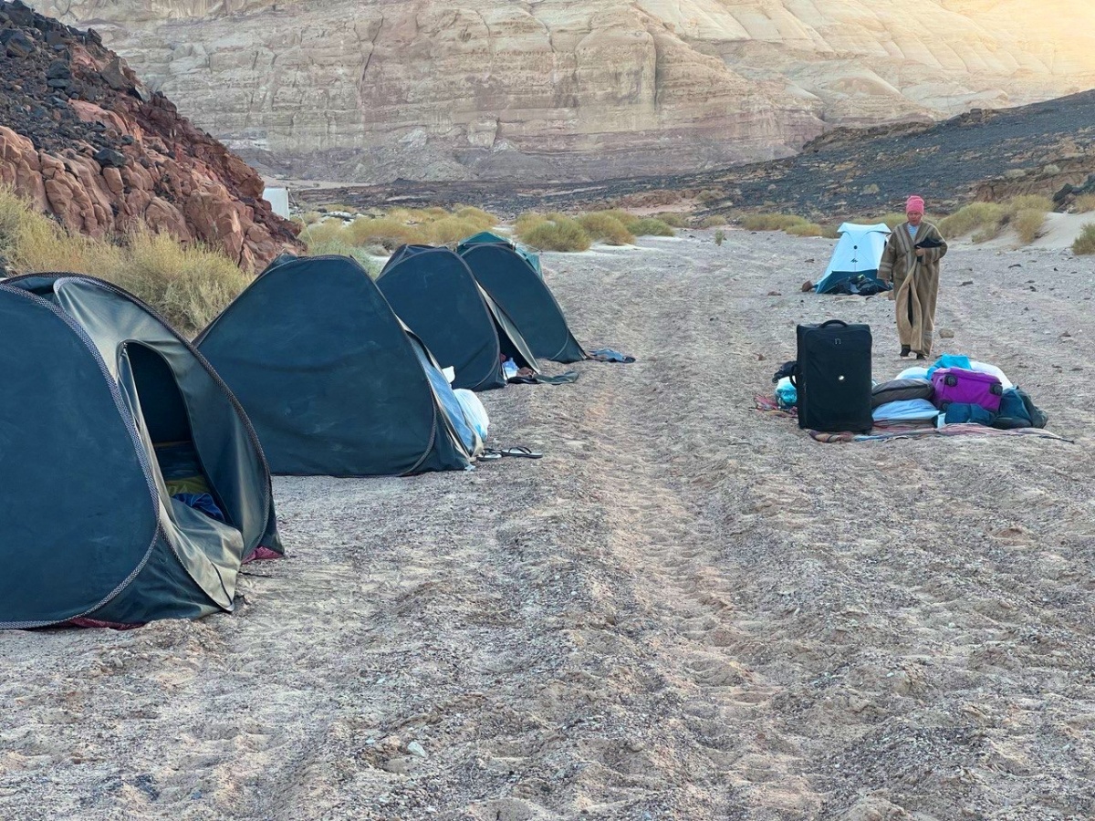 Нас ждет живая, свежеприготовленная бедуинская еда. На завтрак и ужин в лагере всегда будет горячая еда, во время обеда на переходе – холодный ланч, но всегда горячий чай и кофе. В течение похода в меню будут овощи и фрукты, мясо, птица и рыба, а также бабагануш, местные закуски из бобовых и вкуснейшие финики. Ограничений в воде нет, количество питьевой воды на маршруте всегда планируется с большим запасом.