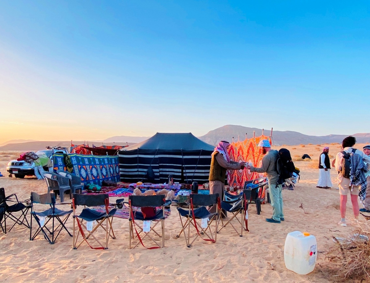 - К закату приходим в лагерь, где уже сварен свежий кофе, и разбиты индивидуальные палатки на каждого участника путешествия и шатер для общих встреч