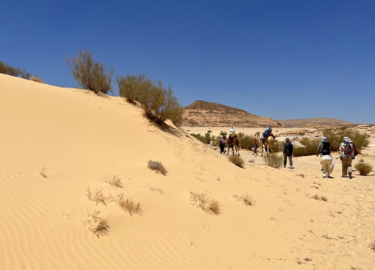 Мы выходим рано утром, днем (когда солнце в зените) делаем длинный перерыв в тени - на обед и отдых и к закату солнца всегда приходим в лагерь. Нас провожают два проводника с верблюдами и, в случае усталости, верблюды смогут повезти вас и облегчить ваш путь.