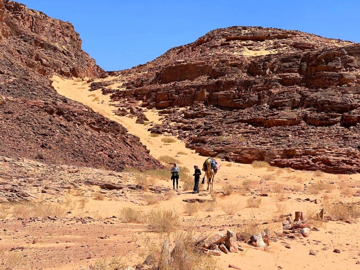 На Синайском полуострове, в месте под названием Серабит эль-Хадим, находится один из самых известных храмов, посвящённых богини Хатхор. Этот храм был важным религиозным и промышленным центром Древнего Египта. Cюда мы и доберемся в финале нашего перехода. Храм Хатхор в Серабит эль-Хадим — не только религиозный, но и исторический памятник, свидетельствующий о том, как древние египтяне соединяли духовное и материальное в своей культуре. Хатхор в Серабит эль-Хадим ассоциировалась с защитой путников в пустыне.