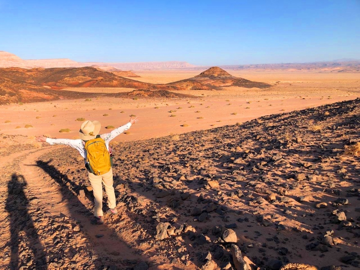 В пустыне нас ждут ежедневные хайкинги по 5-6 часов. Стартуем всегда утром после зарядки и завтрака, гуляем до обеда, а затем отдыхаем до спада дневного зноя и возвращаемся в лагерь.
