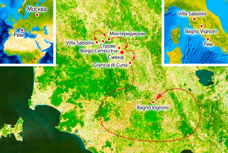Мы увидим деревню Вилла, осушенное русло реки Пьян-дель-Лаго, лес Ренай, и, наконец, Сиену – сердце Тосканы, каменную красавицу с характером, где все дышит прошлым и шепот истории слышится на каждом шагу.